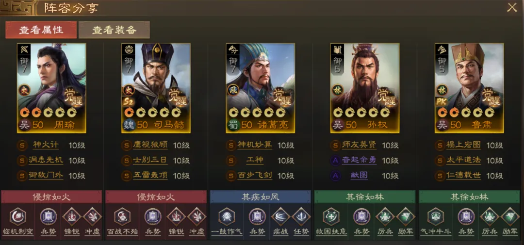 单马、衣钵分别抛弃了司马懿和老诸葛亮,因此剩余吴国的优秀将领结合“天下之智”的缘分效果,还可以组合一套“三智”双动体系。本套阵容在法系爆发力伤害上还是非常不错的,各位如果觉得老周瑜不咋地,在这里选择【雄姿英发】+【文武双全】的SP周瑜也同样是可以的。