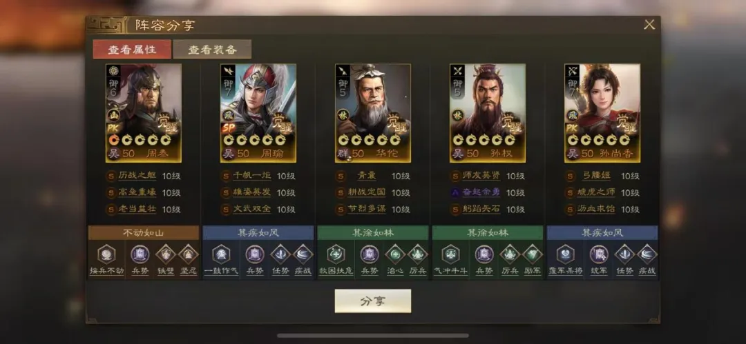没有于吉的主公可以考虑华佗转吴阵营,保护SP周瑜和孙尚香输出。华佗的【青囊】搭配周泰辅助战法,让团队肉起来,为SP周瑜和香香创造生存环境,越打越强。