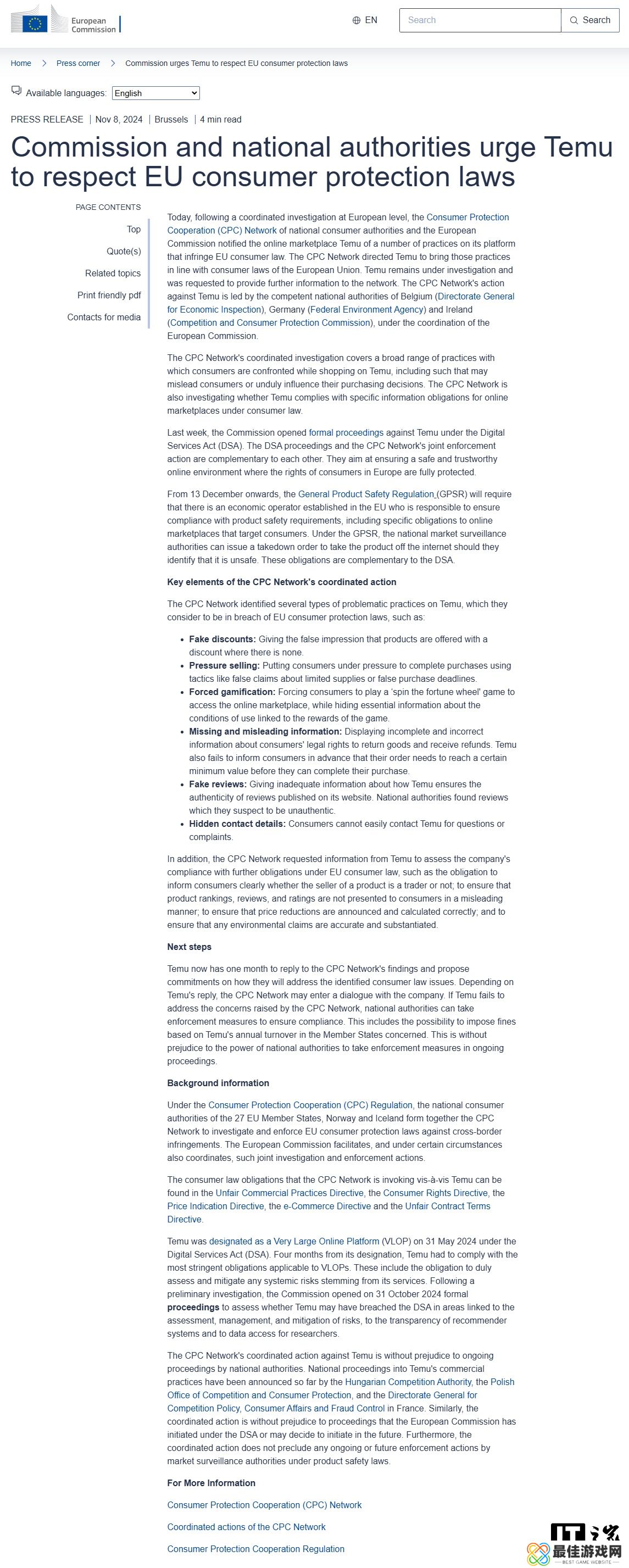 Temu 对此回应表示:“虽然我们在相对较短的时间内赢得了许多消费者的欢迎,但我们仍然是一个非常年轻的平台 —— 在欧盟不到两年的时间 —— 并且正在积极学习和适应当地要求。我们将全面配合此次调查,因为我们相信,从长远来看,这种审查将对消费者、商家和平台有利。”