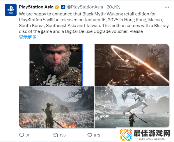 PlayStation Asia官方在X上宣布,《黑神话:悟空》PS5亚洲实体版将于2025年推出!