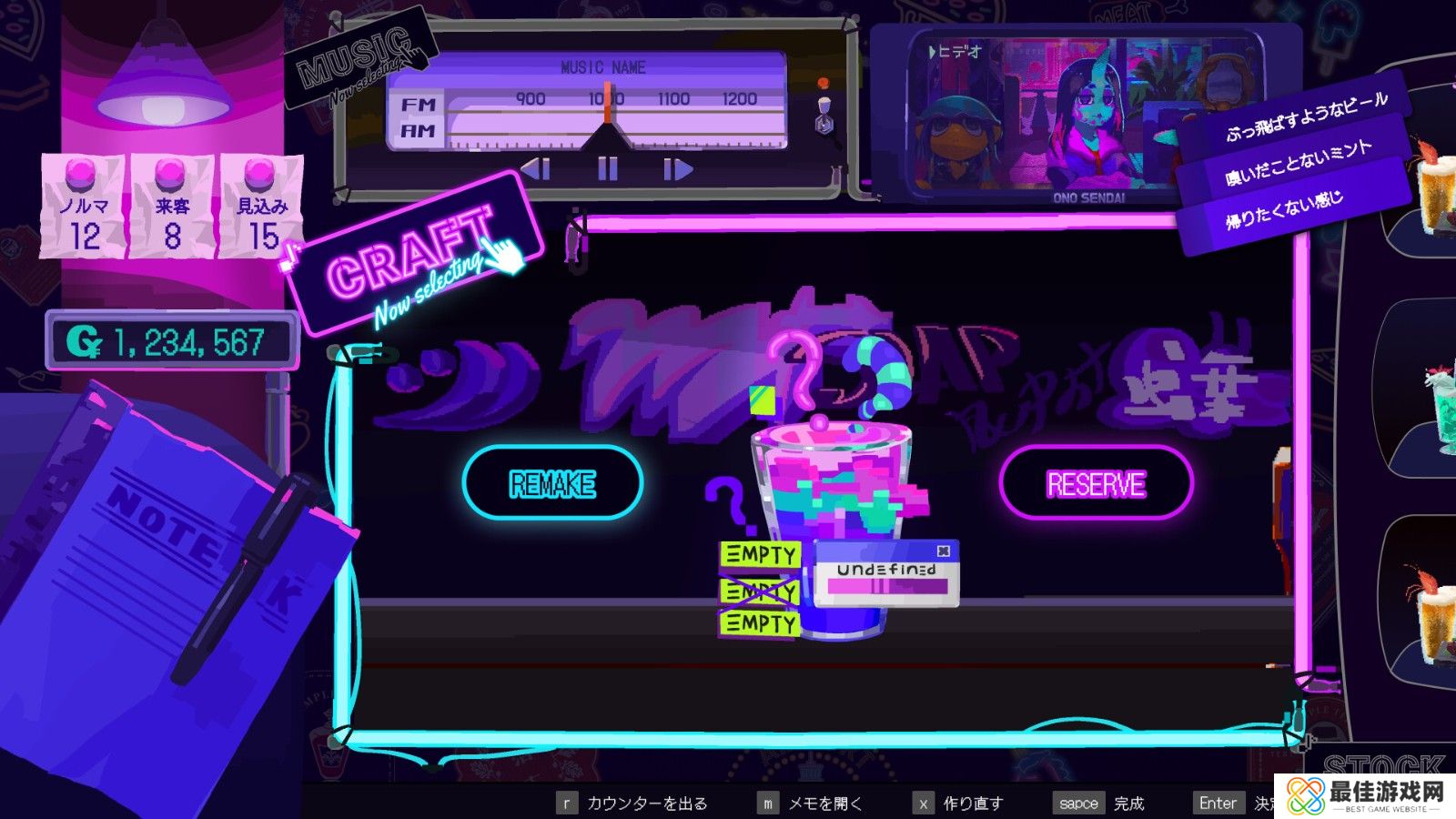使用手头的材料、配方信息,以及各种提示,为其调制出最优的饮品。
