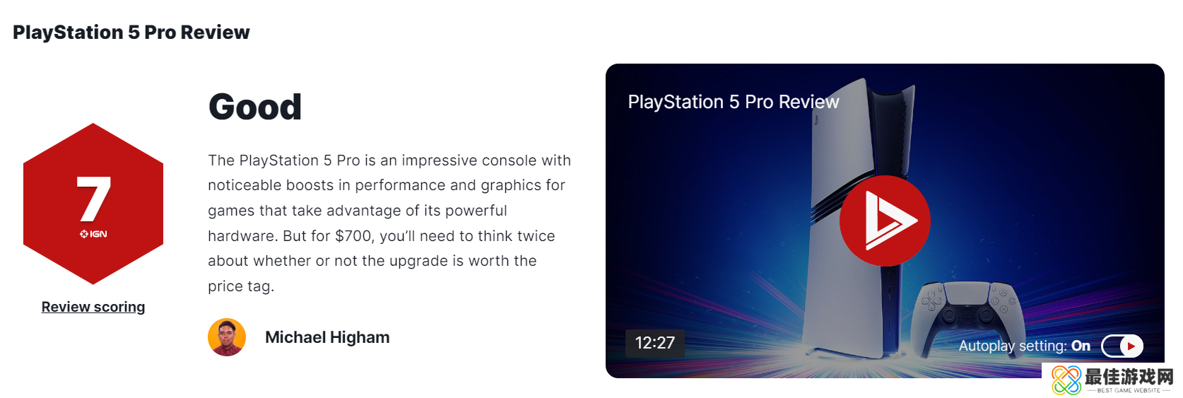 PS5 Pro主机IGN 7分:性能显著提升、售价过高