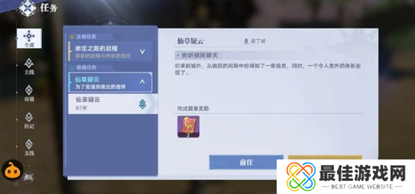 2、大陆纪行有一些奇遇任务,可以在地图上标记蓝色问号的地方探索触发奇遇任务,体验更丰富的剧情,获取更多惊喜奖励