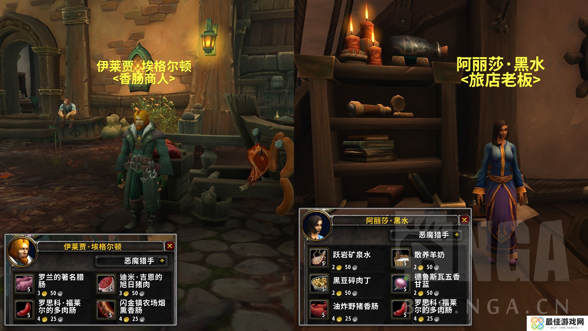 5个可直接买到,需要完成相应城镇的任务才可互动。剩下的1个是由烹饪制作,配方为副本掉落。相信我,做完这个地图任务后你不会想吃这里的香肠的。