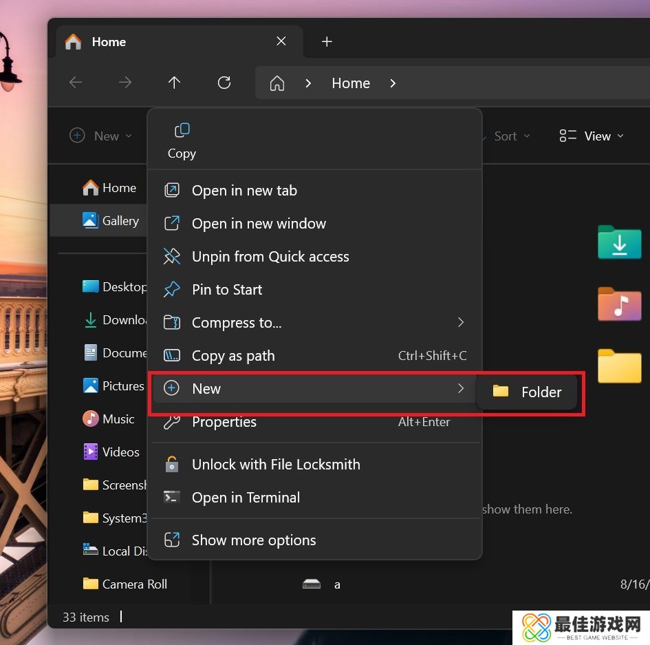 微软发布 Win11 Beta 22635.4445 预览版:文件管理器导航窗格右键菜单添加“新建文件夹”选项