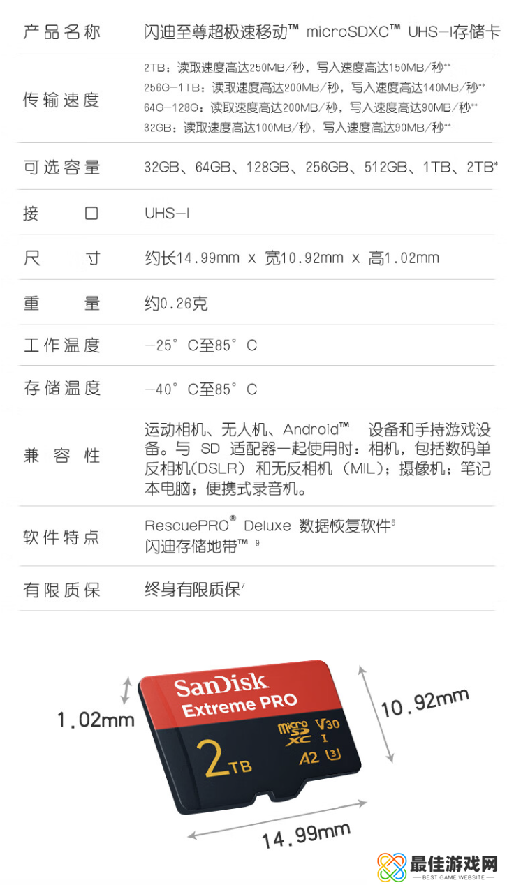 本站 11 月 8 日消息,闪迪现已在京东上架一款2TB容量TF存储卡,该存储卡读速250MB/s,定价为1599元。