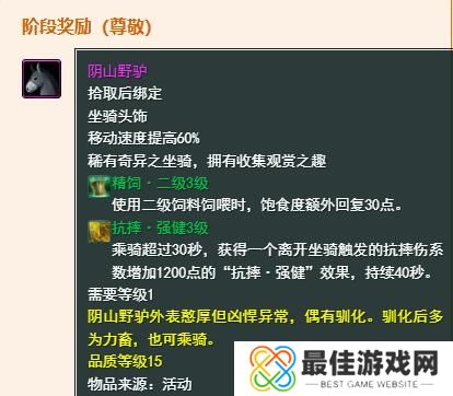 3、【敬重】则需要12级及以上的马匹,【尊敬】则需要13级及以上的马匹;