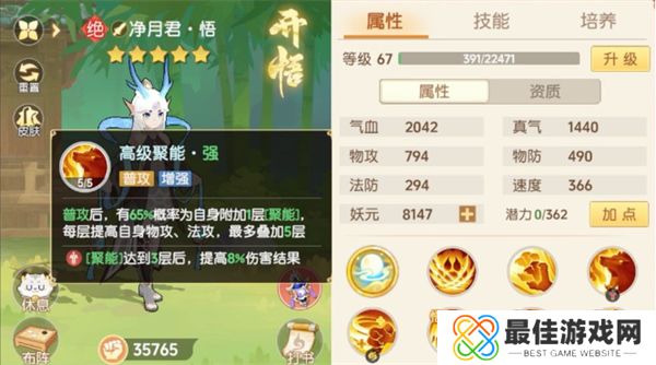攻击加点:提高净月君的输出能力,特别是借助聚能层数,能够大幅提高伤害。