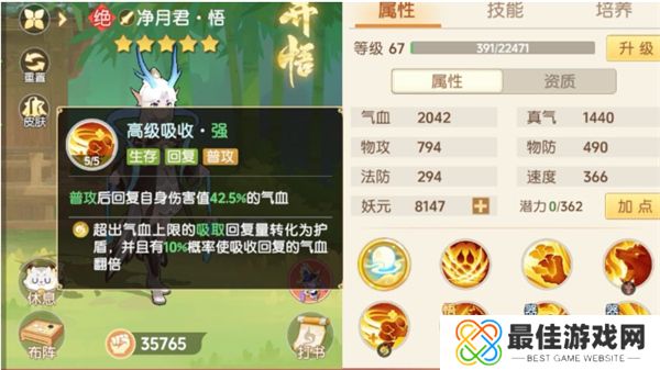 作用:高级吸收不仅能保证净月君的血量恢复,而且还能在满血后转化为护盾,提供极高的生存能力。10%概率效果翻倍,意味着能更高效地保护净月君。