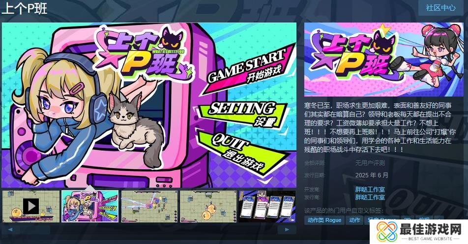 今日(11月9日),国产2D俯视角生存类动作游戏《上个P班》Steam页面开放,2025年6月发售。