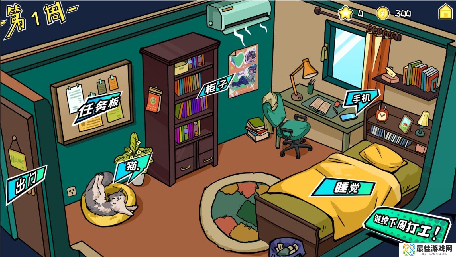 只要坚持过一周就能来到周末,难得的娴静时光,是用来放松一下还是赶紧卷起来呢?游戏中每一轮战斗结束都可以进入到周末,自由时间尽情支配!!!是打开手机X宝购物来买买买或者改造自己的武器,还是钻研书籍学习技能,又或是出门和朋友饱餐一顿也好逛街也好,甚至干脆埋头睡个懒觉,合理分配行动来强化自己吧,对了,家中还有一位特殊的“伙伴”,和它打好交道可能会交上好运?