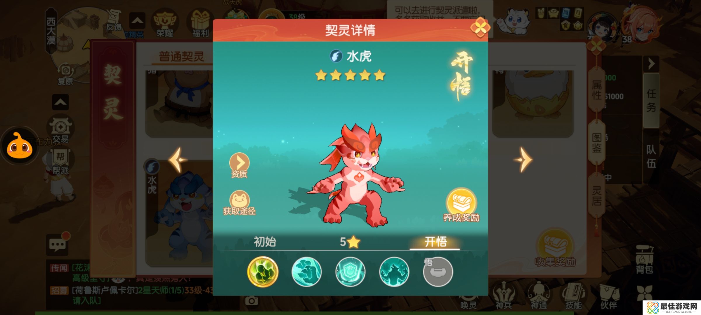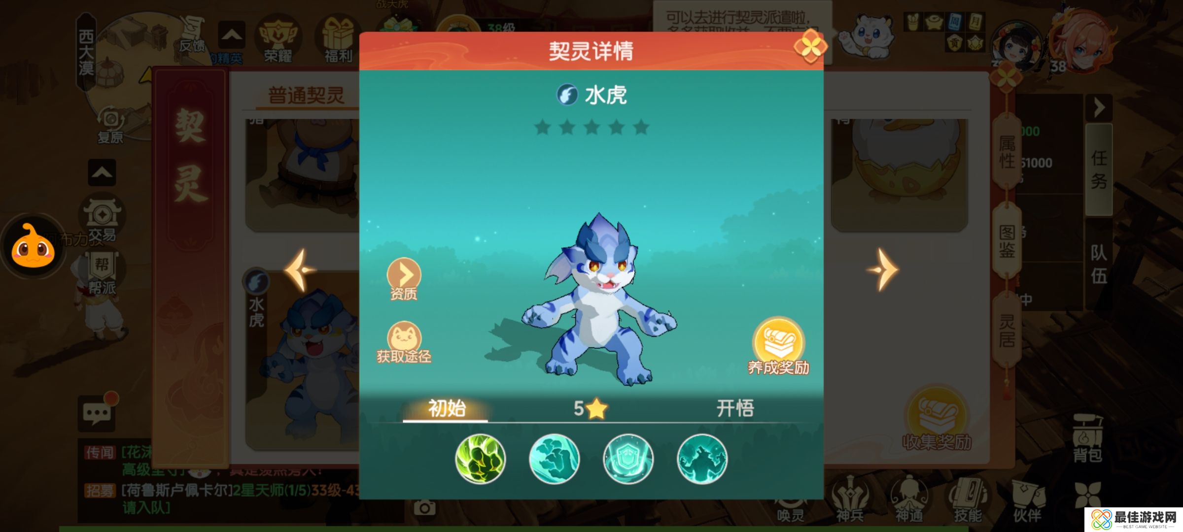 前期平民玩家资源最多除了锦瑶和一只神兽了,应该很难再去养第二只神兽了,可以选择养两只水虎,PVP PVE觉得够用 适用性完爆65级以下全部契灵(小技巧:一阶唤灵币即可召唤,前期唤灵币可以攒起来,投入到水虎上)