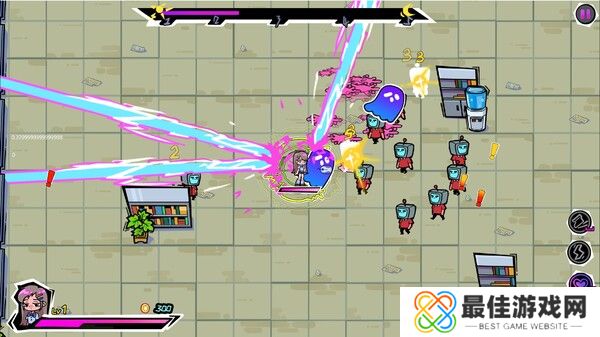 你在工作中最经常用到的东西是什么?鼠标、键盘还是喝水的水杯之类的,在这里,它们就是你最称手的武器,游戏中提供十几种不同的初始武器,而随着游戏的推进,你可以对它们进行各种改造,以大幅强化它们的能力,甚至展现出完全不同的形态和功能,每种武器都有不同的进化分支,也许能将键盘改造成什么奇奇怪怪的东西也说不定……?