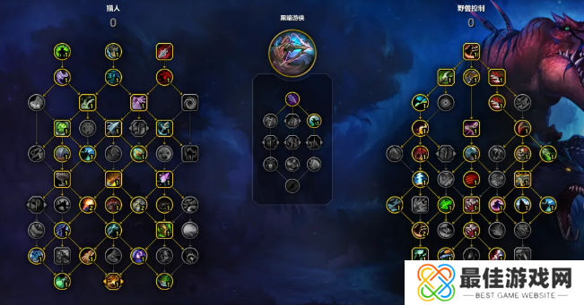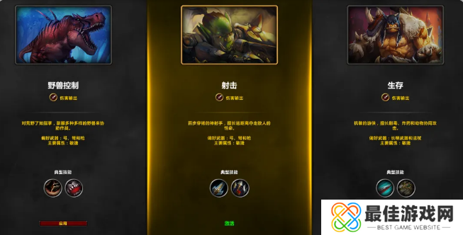 猎人的三个专精笔者建议大家选择专精‘射击’,不过也同时附上‘野兽控制’的天赋。