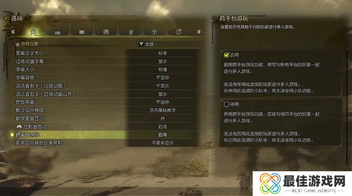 跨平台游玩功能可在选项 > 游戏设置 > 跨平台游玩功能设置中调整。