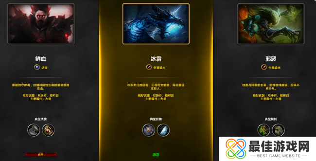 死亡骑士的三个专精笔者建议大家选择专精‘冰霜’。