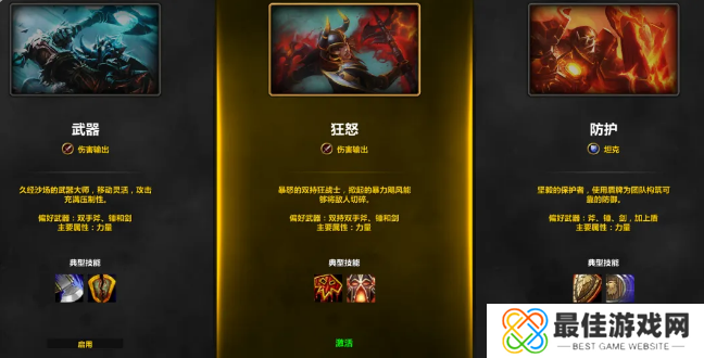 战士的三个专精笔者建议大家选择专精‘狂怒’。