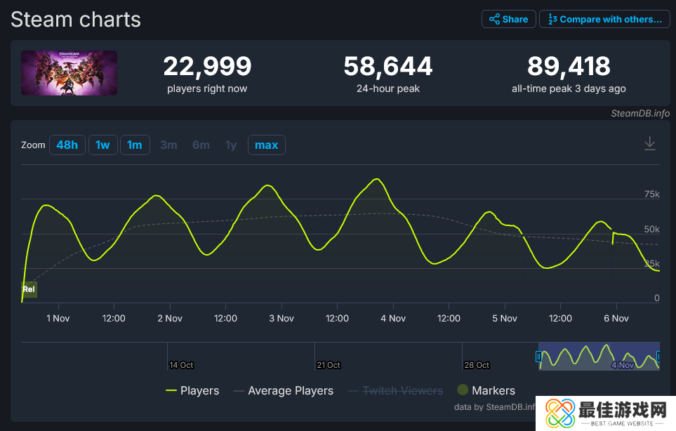 另外,即便在试图维护 DEI 和游戏的许多媒体嘴里这款游戏首发峰值近9 万人的玩家峰值在 Steam 热门榜前列是“表现不错”且游戏没有失败的标志,但这种量级的游戏甚至没能超过同期的《怪物猎人:荒野》测试版热度,以及正式发售了一年之久《博德之门3》的热度,已经算是明显的失败了。