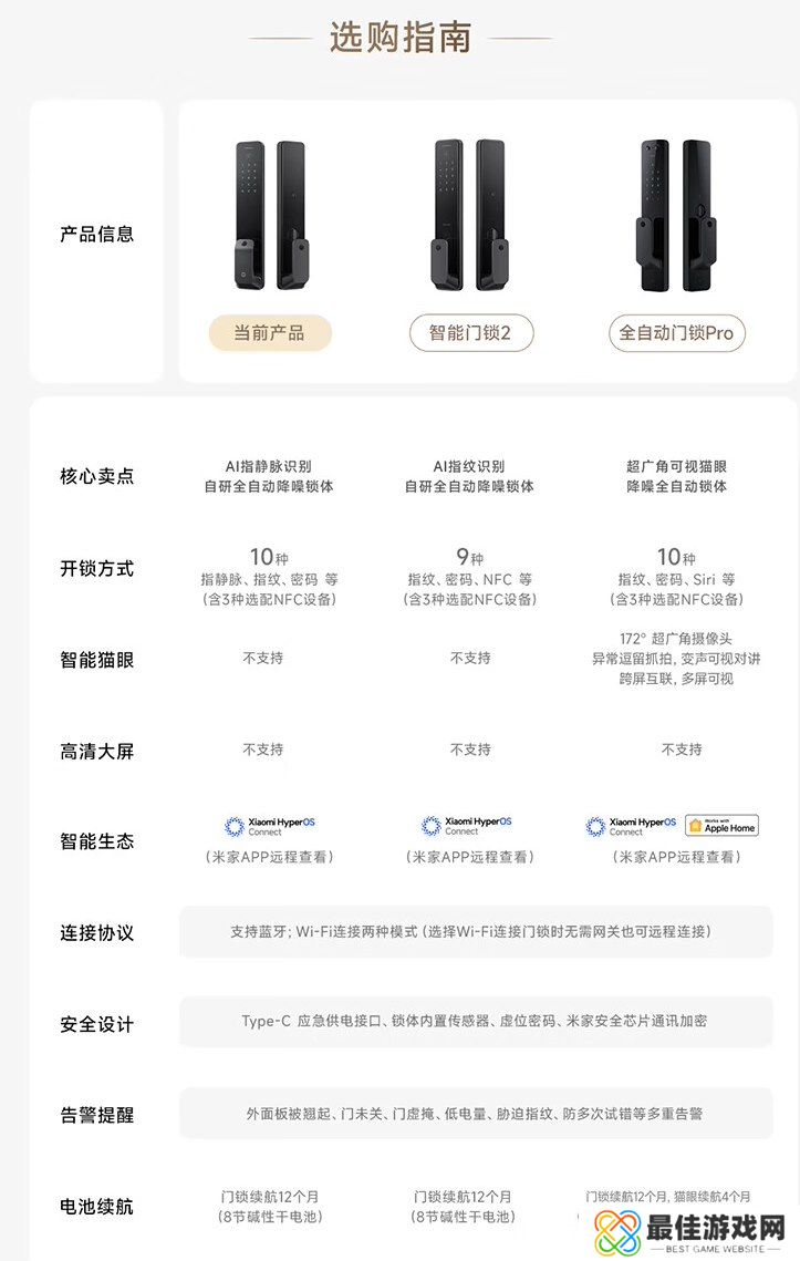 本站附小米智能门锁系列产品参数信息对比如下(左为小米智能门锁 2 指静脉版):