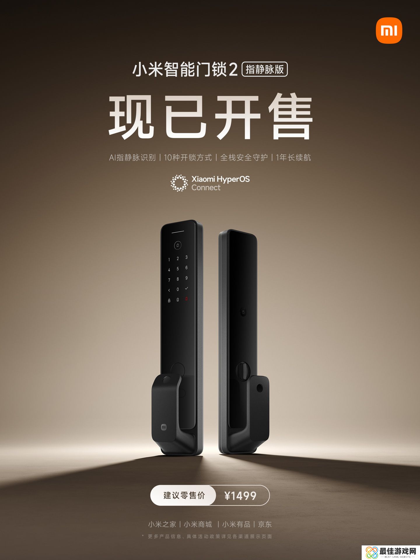 小米智能门锁 2 指静脉版开售于 5 月 15 日,首发价为 1299 元。