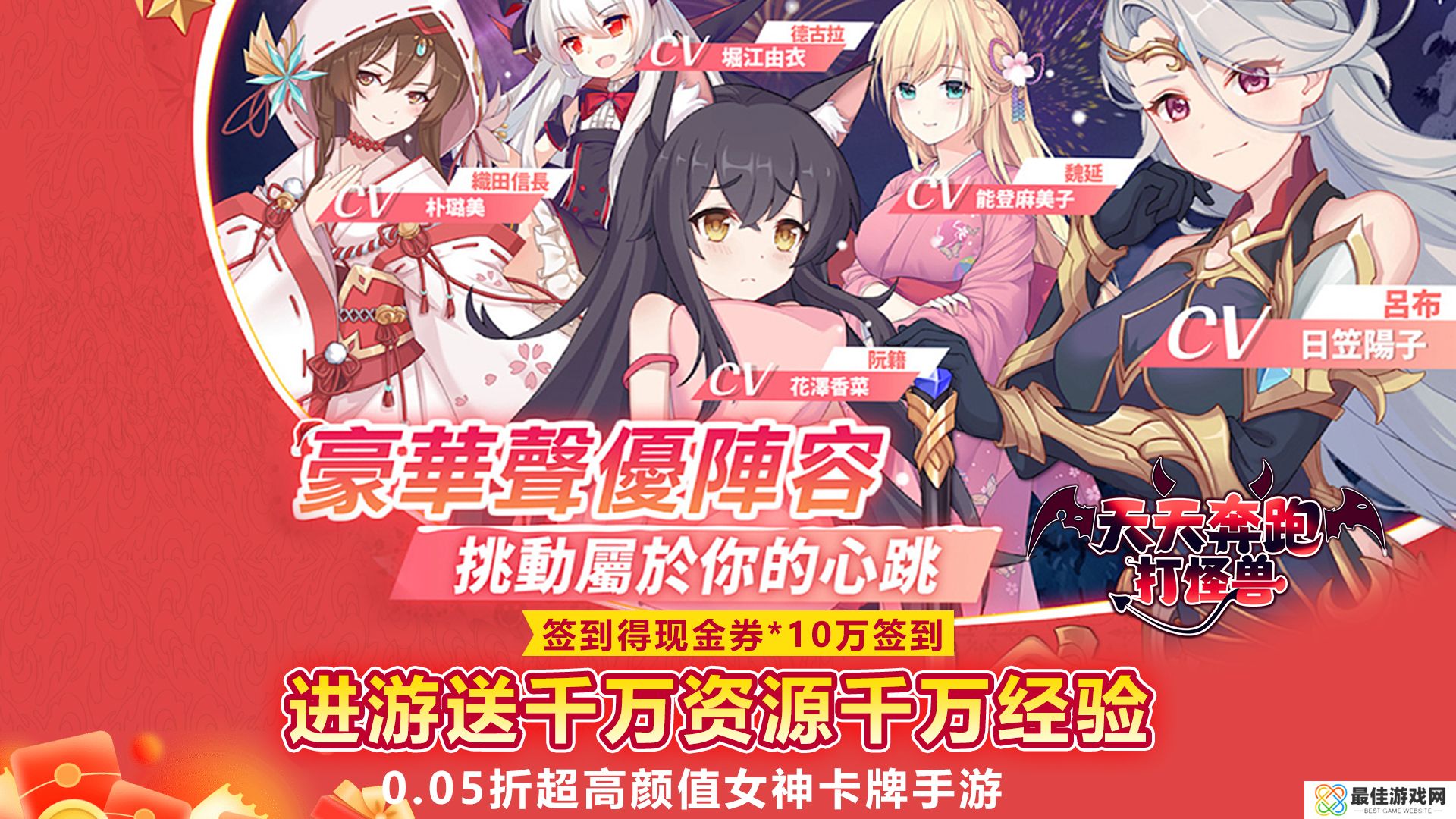 《天天奔跑打怪兽》是一款以收集二次元萌娘为主题的卡牌游戏,在这里可以体验多种不同的萌娘,随意搭配阵容,直通满星人生!游戏上线就送美女包围礼盒,所有充值仅需0.05折,内置无限十连抽卡系统,UR萌娘任你挑,海量福利资源等你来领。让你体验与众不同的二次元手游!