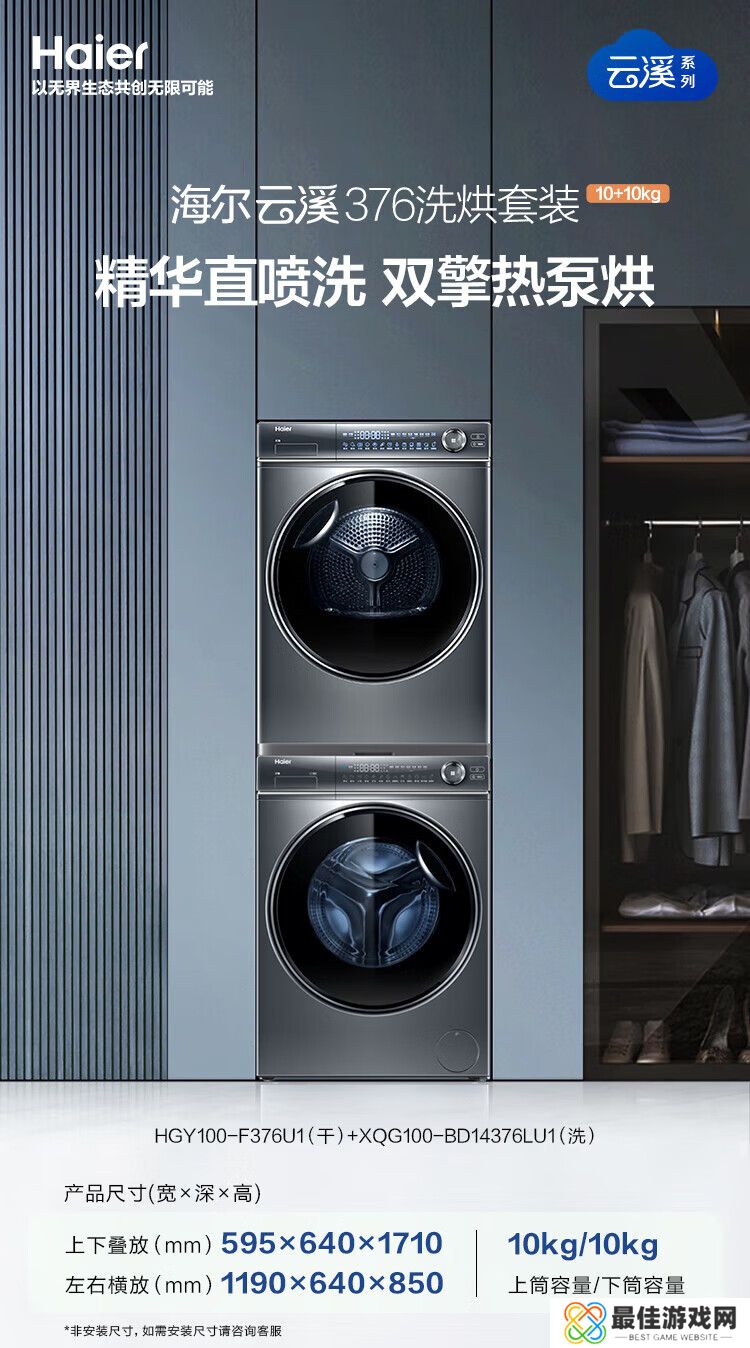 京东海尔 洗衣机烘干机组合 376+376 至尊款以旧换新 4169 元直达链接另外,即日起京东可领至高 11111 元无门槛红包,再省一笔更划算:点此抽红包。