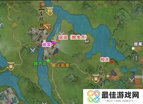 3、对话结束后去找【段方北】然后在三岔路口摘止血草回来给【段方北】敷药;
