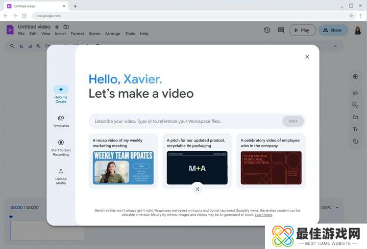 谷歌 AI 视频编辑应用 Google Vids 上线:帮你写脚本、剪片、找素材等