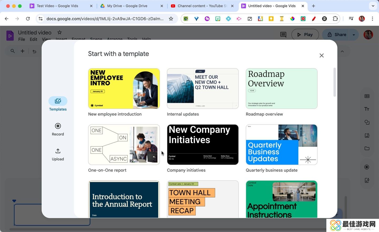 此外,用户还可以从多种模板中开始创作,添加动画、过渡和效果,使用无版权内容库或直接从 Google Drive 和 Google Photos 中导入媒体。本站附上相关图片如下: