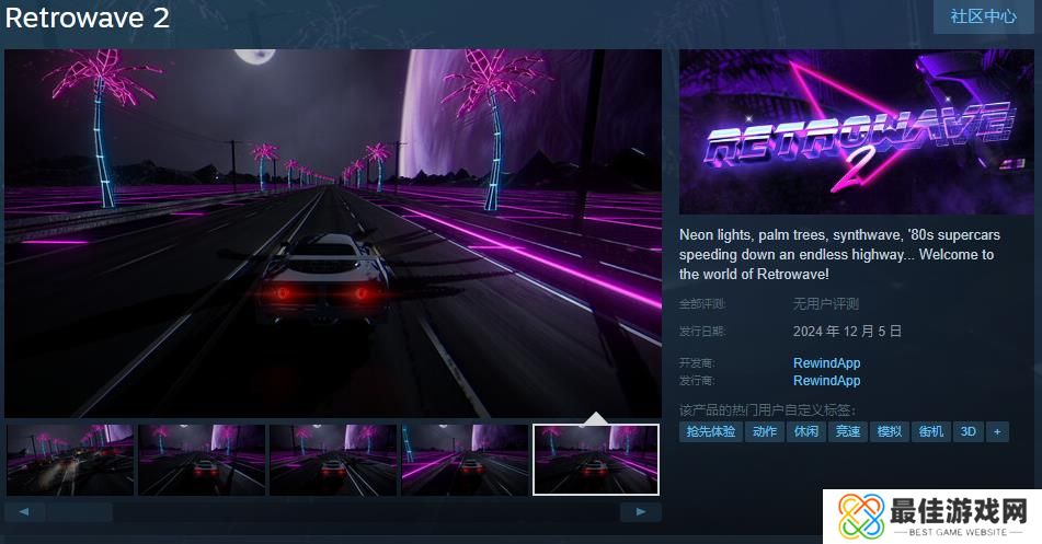 今日(11月7日),复古风格竞速游戏《Retrowave2》Steam页面开放,2024年12月5日发售,游戏支持简繁体中文。