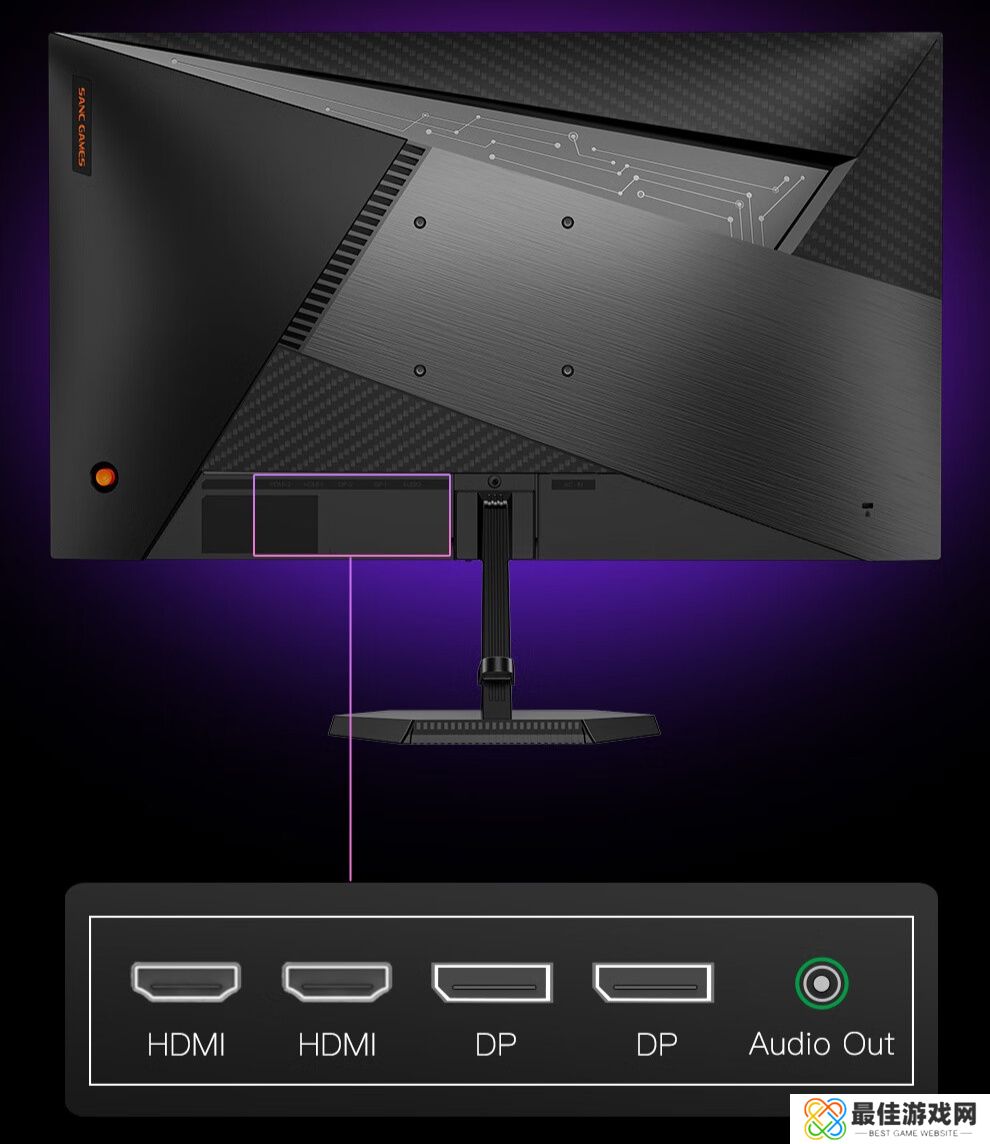 此外,这款显示器支持旋转升降俯仰,配备2 个HDMI2.0 接口、2 个DP1.4 接口、1 个3.5mm 音频接口。