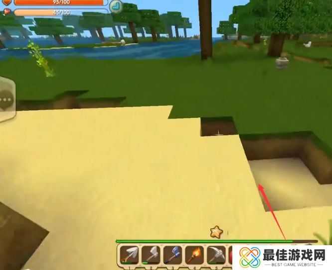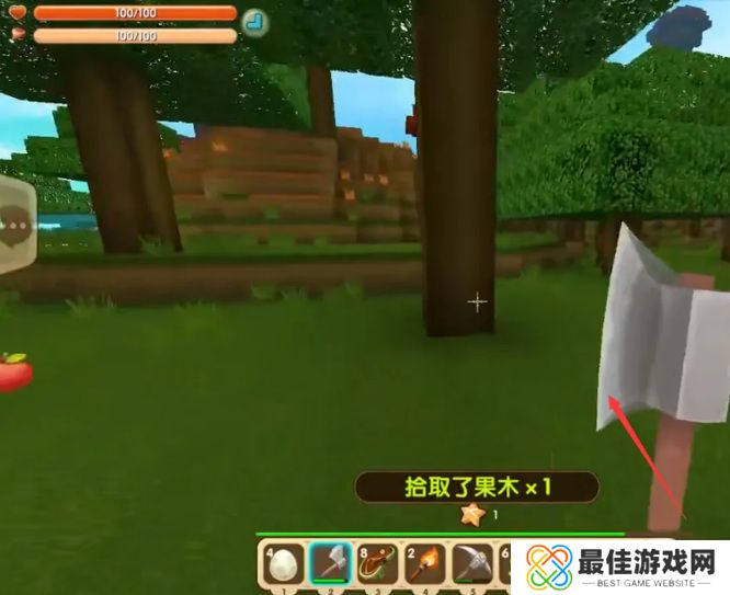 1、进入游戏来地图上收集木头,将其合成木板,然后制作出一个工具台,接着将工具台放在地面上,放入材料制作出石头镐和石头铲。