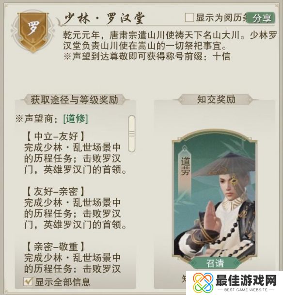 《剑网3》少林罗汉堂声望提升方法