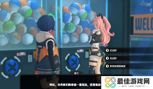 在六分街141杂货铺旁的自动贩卖机看到妮可,陪她探索自动贩卖机