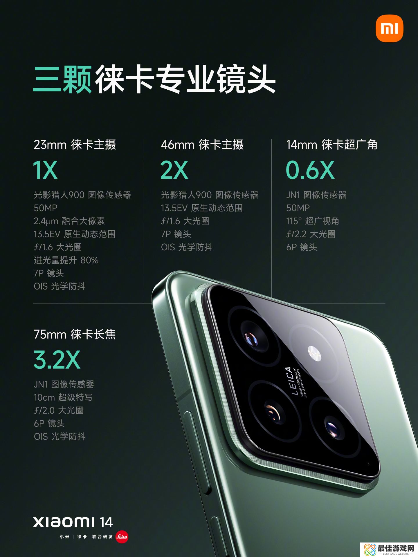 影像方面,小米 14 搭载了新一代徕卡 Summilux 镜头,光圈达到了 f / 1.6,采用 7P 非球面高透镜片。此外,小米专为该镜头打造了“光影猎人”影像传感器。