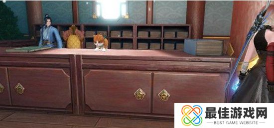 2、然后来到苏澜城商会里,在柜台上面看到一只橘猫,靠近后点击拍摄就可以了。