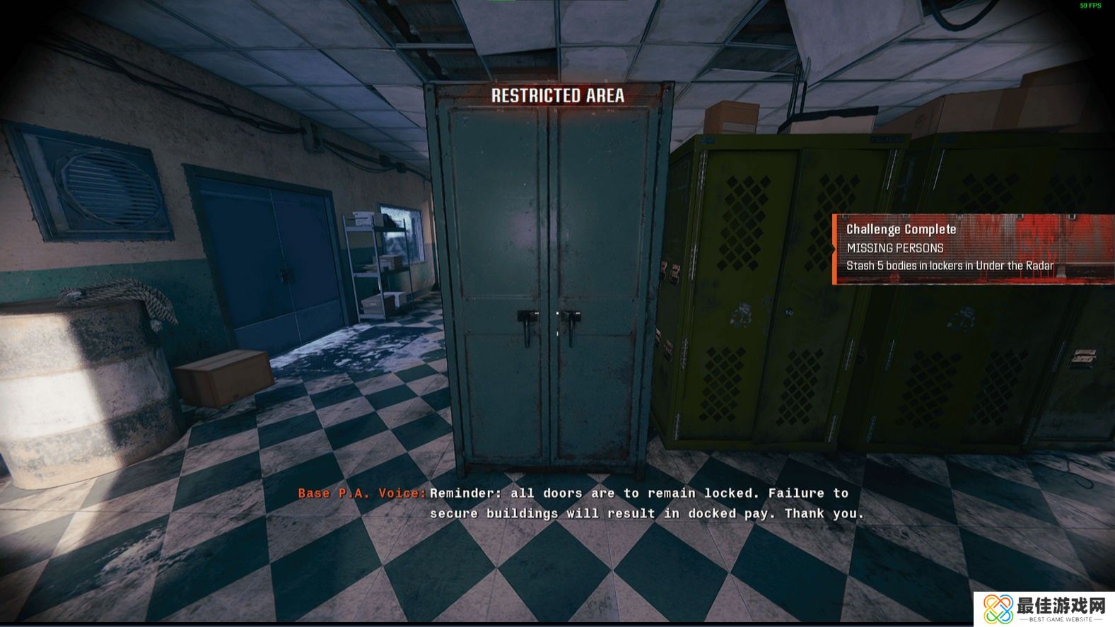 你第一次能做到这一点实际上是在你开始任务的时候。拿走警卫的衣服,把他扔进储物柜。现在,请注意这些储物柜,您可以随时使用它们,但一次只能容纳一个人。这张名片其实并没有那么糟糕,因为仅在“破坏弹头”区域就有4个储物柜。