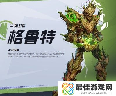 《漫威争锋》是一款超级英雄团队PVP射击游戏。格鲁特是游戏中的一个英雄,格鲁特是来自X星球的花神巨像族人,他拥有旺盛的生命力,掌控着自然界万千植物。巨树不言,下自成蹊,寡言的他是团队中坚实可靠的开路者