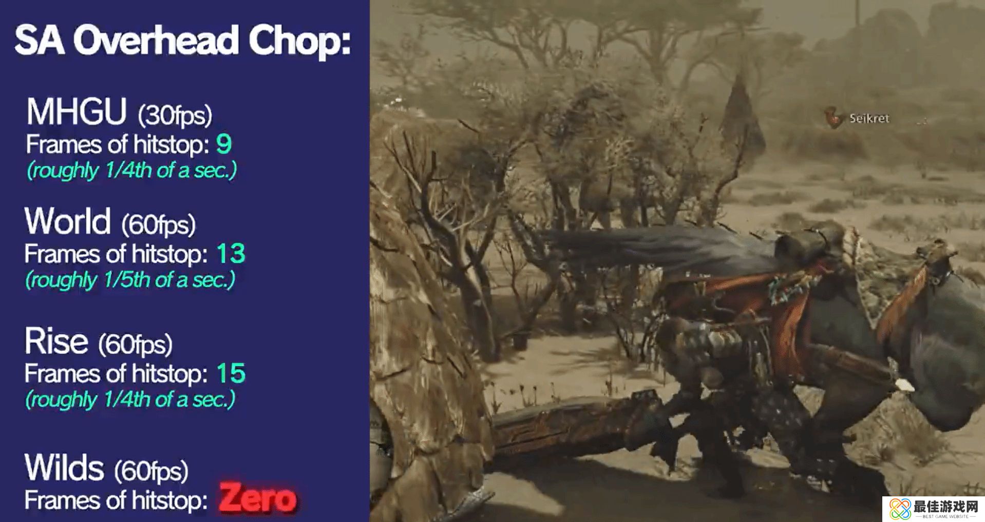 然而,在《怪物猎人:荒野》中,包括该玩家在内的许多网友都反映,他们的武器在攻击时几乎没有出现卡肉现象。该玩家使用斩斧进行对比,发现与前几部《怪物猎人》相比,《荒野》中的卡肉帧几乎为零,武器直接劈下没有任何停顿。