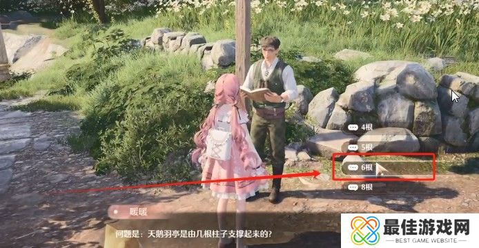 继续找该地点的任务npc对话,此次的问题答案是:6根。