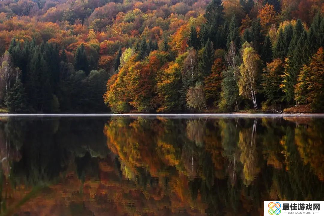 清晨时分,树林中经常会有薄薄的雾气,这使其看起来非常有秋天味道,一般来说水边、山上的树木密集区域更容易出现这种现象。