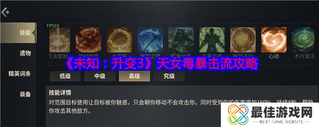 本文给大家大家带来了《未知:升变3》天女毒暴击流攻略,这套流派是用天女被动能让所有技能暴击,加上毒叠加伤害打出巨大伤害。毒技能伤害10倍神识,持续5秒,打满10层就是100倍,暴击能番3倍左右就是3