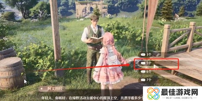 继续找该地点的任务npc对话,此次的问题答案是:5个。