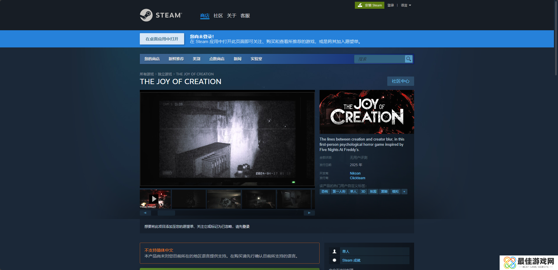 《创造的乐趣》是一款受《弗雷迪五夜》启发的第一人称心理恐怖游戏,而这款游戏的下载网址就是购买平台的购买页面,比如Steam版就是在购买页面购买之后,点击页面中的马上开玩就可以开始下载了。