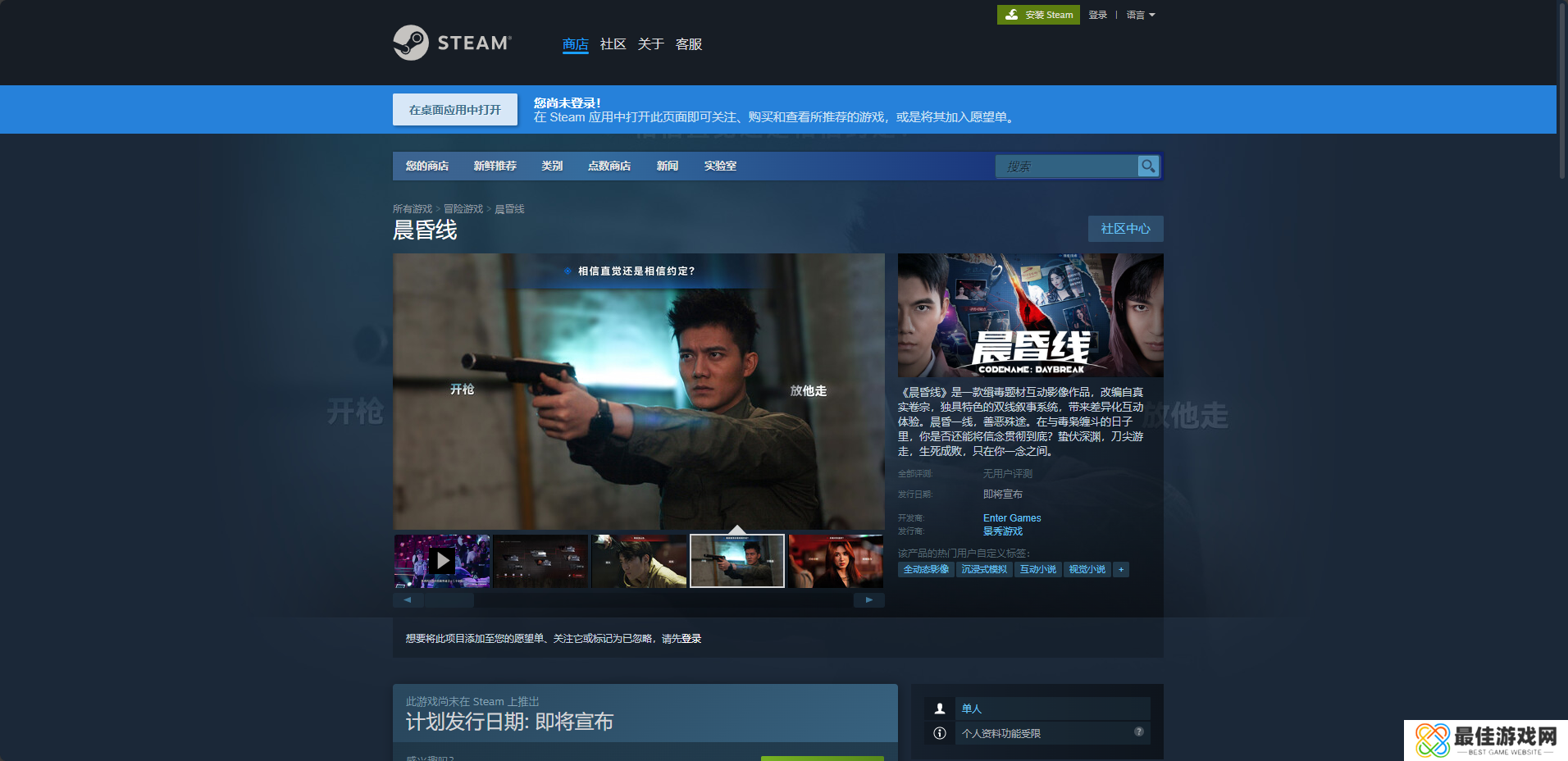 《晨昏线》是一款缉毒题材互动影像游戏,而这款游戏的官网地址就是Steam平台的购买页面,进入到这个游戏的购买页面基本上就能知道所有这款游戏的信息。