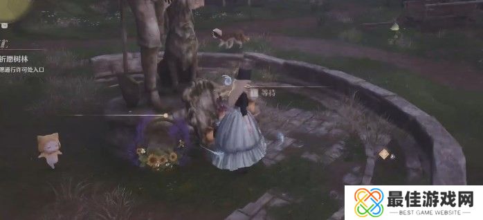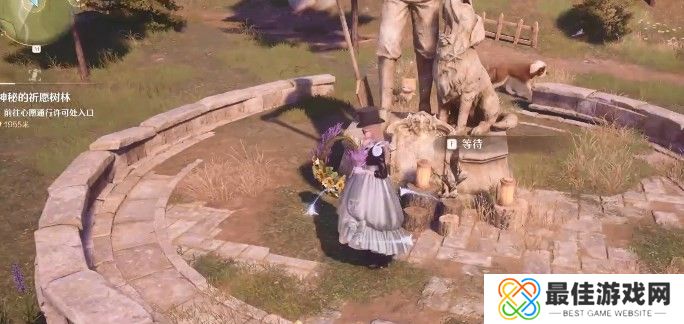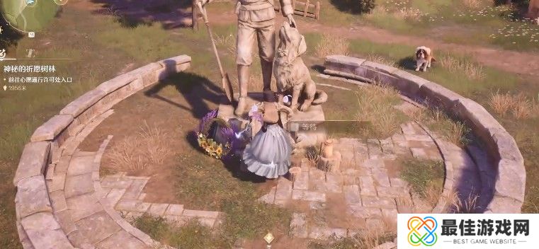 与这里的小狗进行互动,即可接取任务。接取任务之后,来到雕像前等待,等待结束与新出来的三个小孩npc对话。对话完毕之后回到雕像前再等待一次,然后与新出来的一对老夫妻npc对话。再回到雕像前等待,与新刷出来的一位女性npc对话。对话知道小狗的故事,任务即完成。