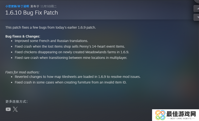 官方同时还在Steam/GOG更新到了1.6.10,主要包括一些BUG与MOD相关修复,不久后也会在其他平台上线。