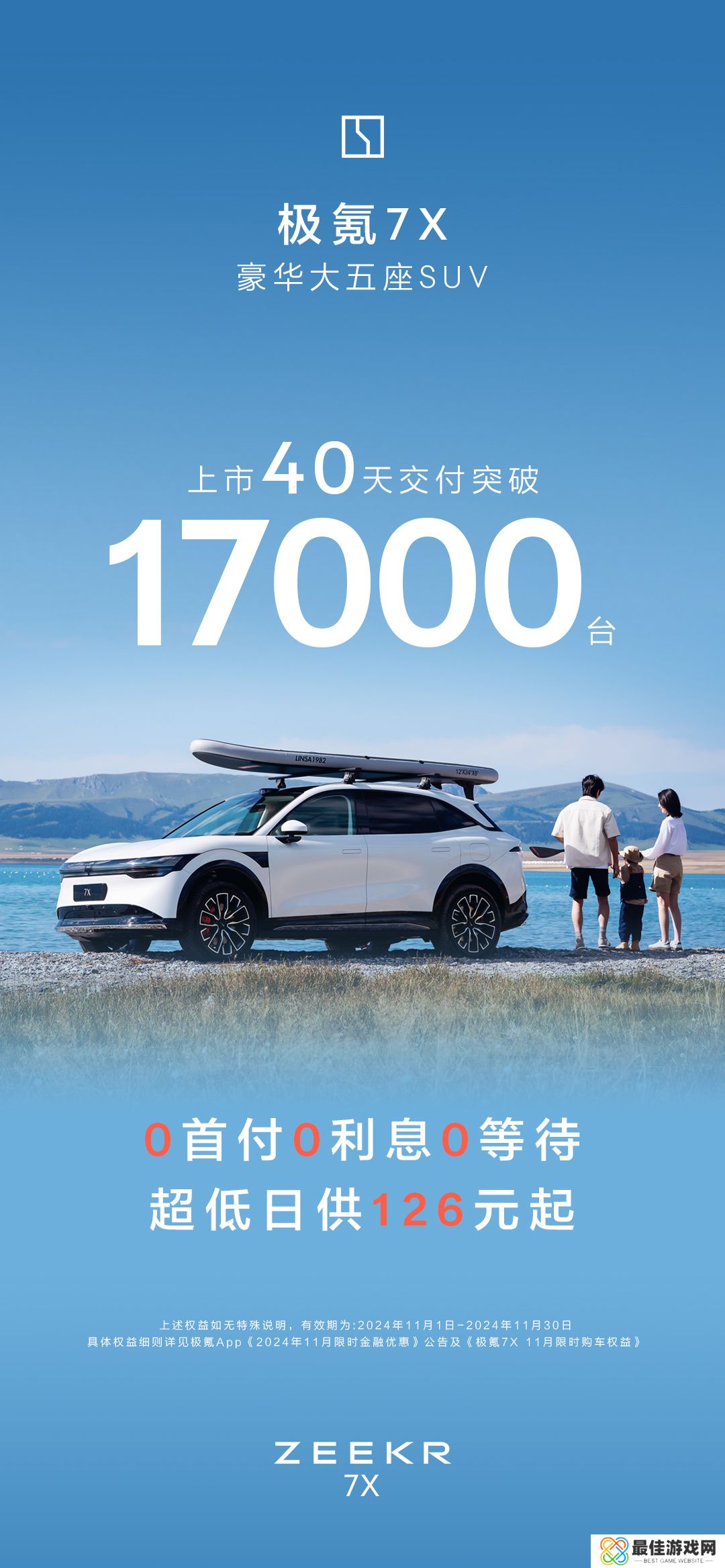 本站此前报道,极氪汽车本月初(11 月 1 日)发文宣布,极氪 7X 上市 40 天交付量突破 17000 台,刷新豪华纯电交付纪录。