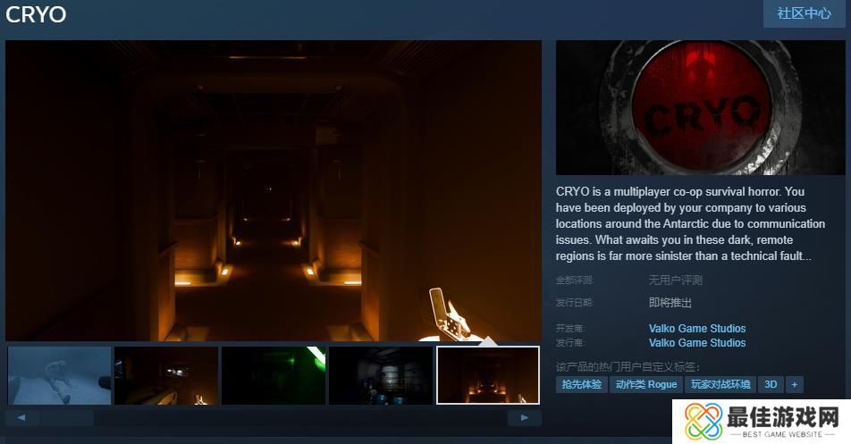 多人合作生存恐怖游戏CRYOSteam页面 AI驱动怪物