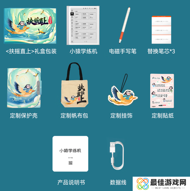 礼盒包含:扶摇直上保护套 + 帆布袋 + 挂饰 + 主题贴纸 + 3 盒替换笔芯 + 手写笔。